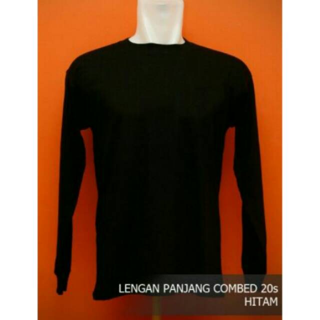 Kaos Lengan Panjang Karet Polos Hitam Bahan Cotton Combed 30s Baju