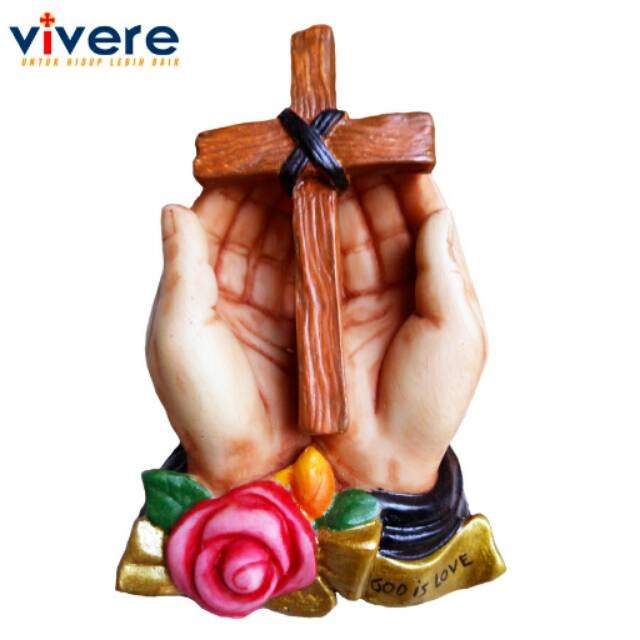 Jual Patung Rohani Tangan Berdoa Memegang Salib Hiasan Arca