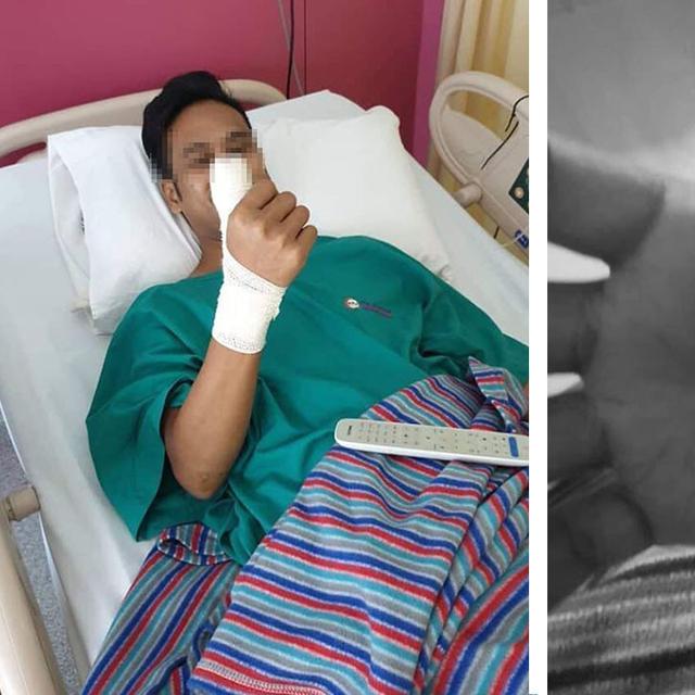 Pria Ini Merintih Menahan Sakit Akibat Pecahan Kaca Bersarang Di
