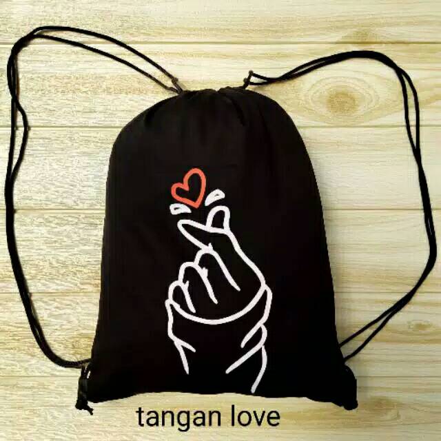 Stringbag Tas Serut Korean Style Bahan Drill Tangan Love