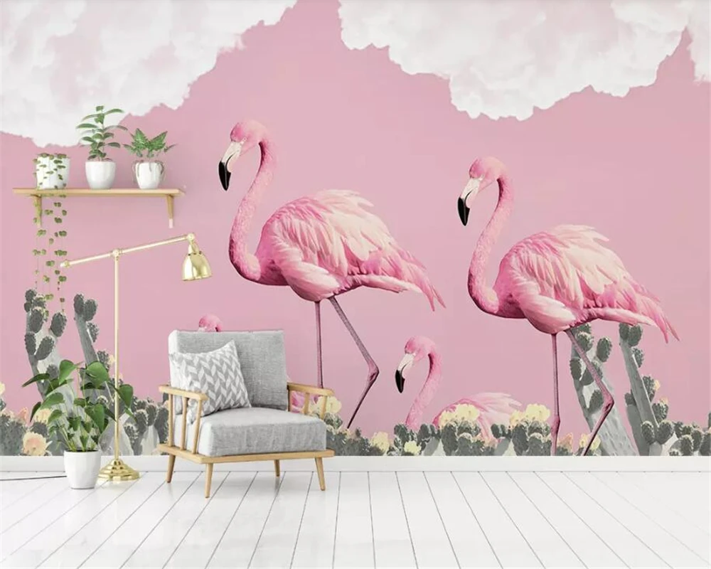 Beibehang Wallpaper Kustom Rumah Dekoratif Fresco Flamingo Hutan