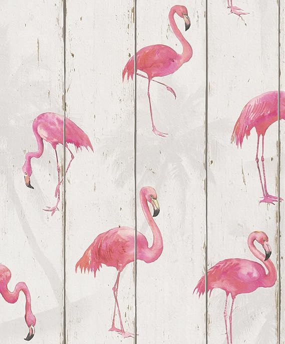 Flamingo Wood Panel Wallpaper Pink Amazon Co Uk Diy Tools