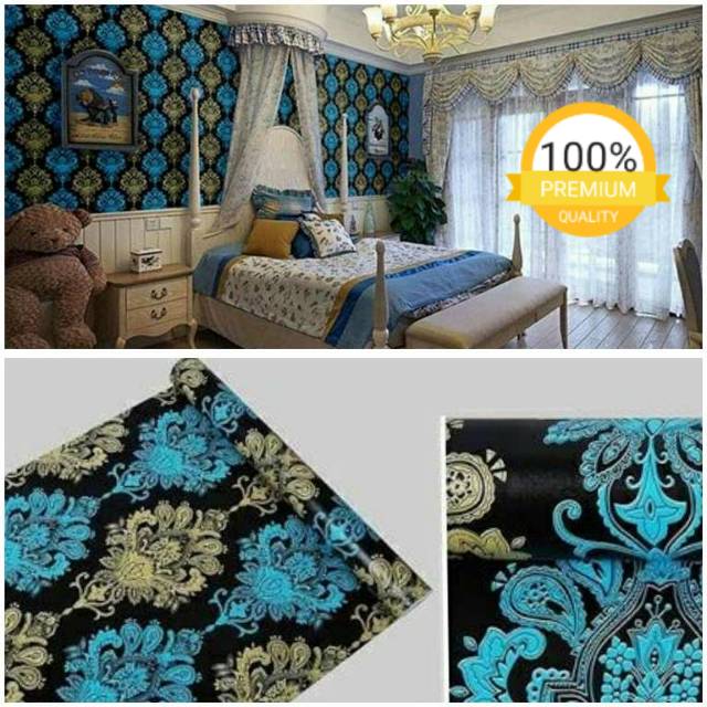 Wallpaper Dinding Murah Ruang Tamu Kamar Tidur Batik Hitam Biru