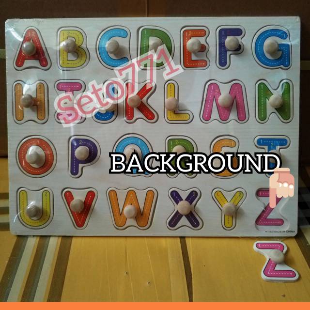 Puzzle Kayu Dengan Background Edukatif Huruf Angka Knob Puzle