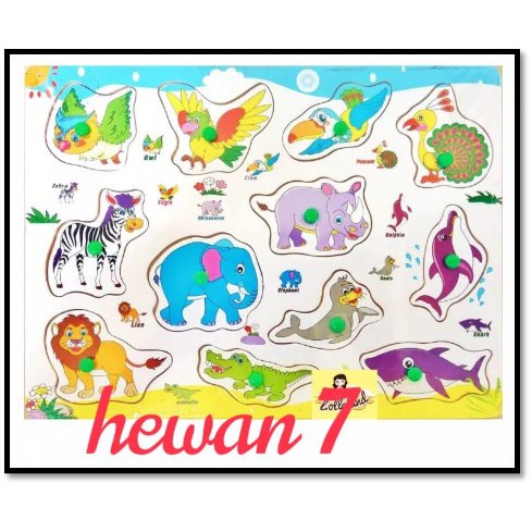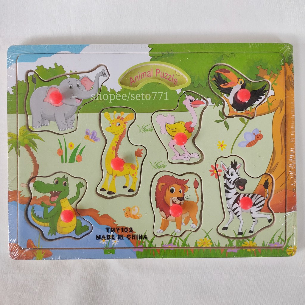Puzzle Kayu Dengan Background Edukatif Hewan Puzle Jigsaw Knob