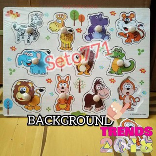 Mainan Anak Puzzle Kayu Dengan Background Edukatif Hewan Puzle