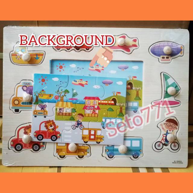 Puzzle Kayu Dengan Background Edukatif Transportasi Knob Puzle