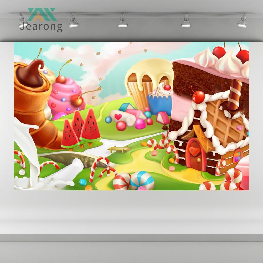 Layar Backdrop Background Prop Fotografi Gambar Kartun Buah Jea
