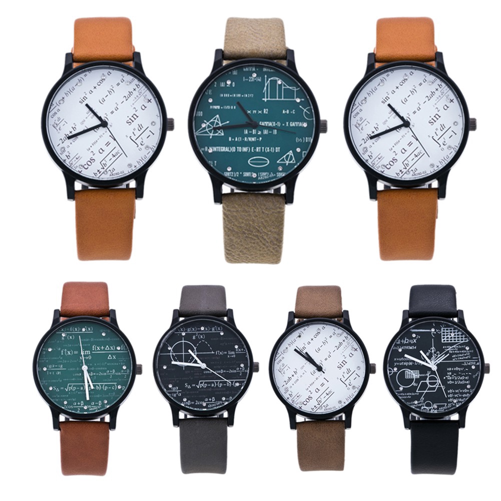 Jam Tangan Quartz Unik Motif Print Formula Matematika Bahan Kulit