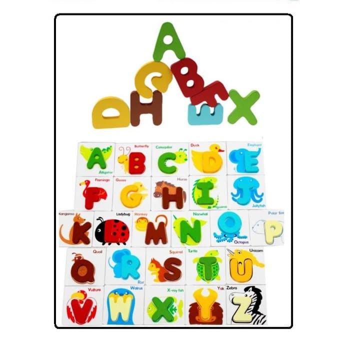 Mainan Edukasi Puzzle Mencocokkan Kartu Nama Binatang N Huruf 3d