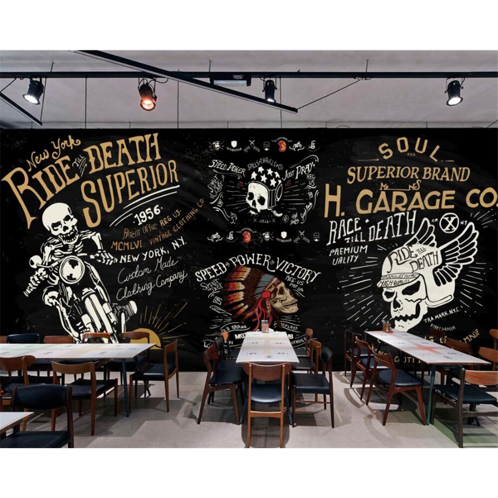 Beibehang Wallpaper Kustom Eropa Dan Amerika Motor Tengkorak Bar