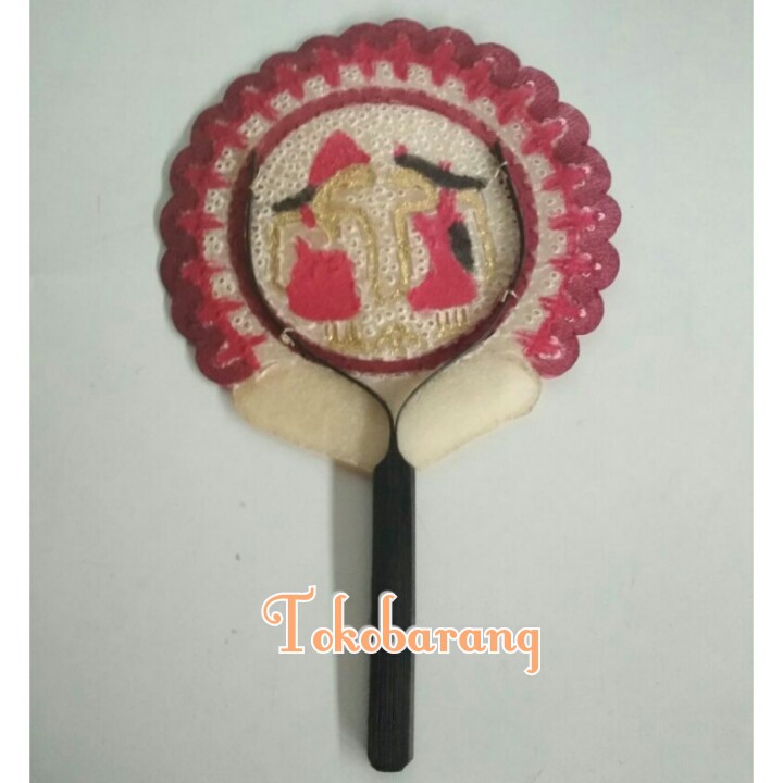 Display Souvenir Pernikahan Kipas Tangan Bulat Gambar Wayang