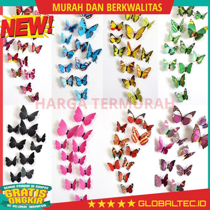 Lcr09 Alat Rumah Tangga 3d Wall Sticker Butterfly Pvc Stiker
