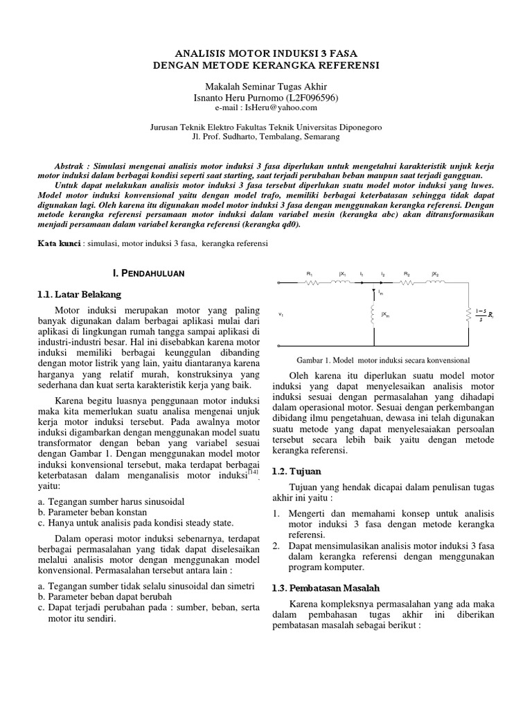 Pdf Satu Metode Dalam Mengoperasikan Motor Induksi 3 Fasa Rotor