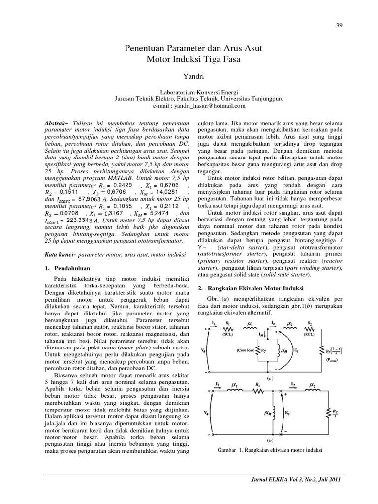 Pdf Model Rangkaian Ekivalen Motor Induksi 3 Fasa Saat Beroperasi