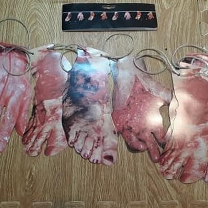 Dekorasi Halloween Banner Kaki Tangan Berdarah Order Yukkk