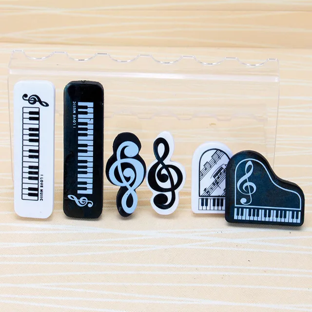 6 Pcs Hitam Putih Musik Penghapus Pensil Belajar Sekolah Barang