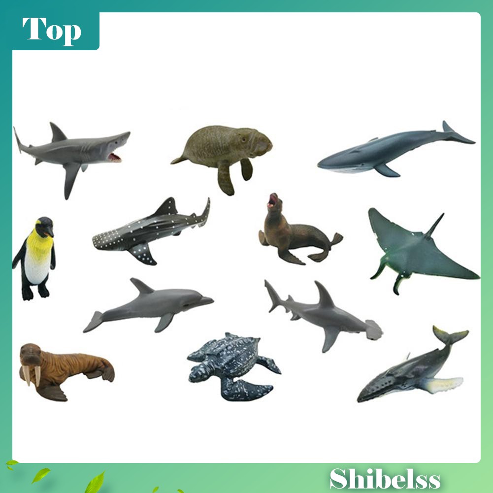 12pcs Box Mainan Simulasi Hewan Laut Ikan Hiu Lumba Lumba 3d