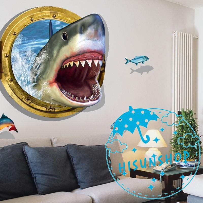 Sh Stiker Dinding Gambar Ikan Hiu 3d Untuk Dekorasi Kamar Tidur
