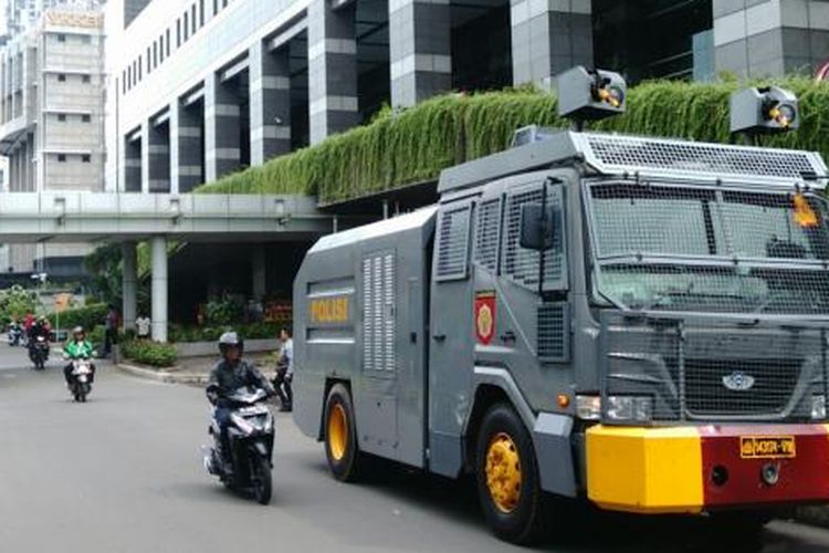 Jakarta water cannon dan mobil sound system pengurai massa raisa milik polisi yang disiagakan di depan gerbang gedung dpr dirusak. Petugas menyemprotkan cairan ini menggunakan mobil pemadam kebakaran maupun mobil water cannon polisi.