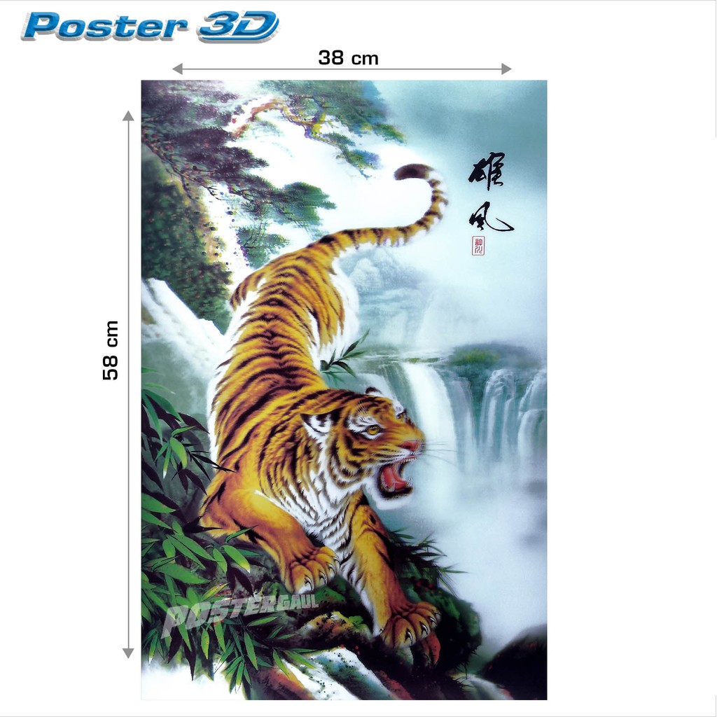 Cod Poster 3d Fauna Harimau 3d65 Ukuran 58 X 38 Cm Shopee