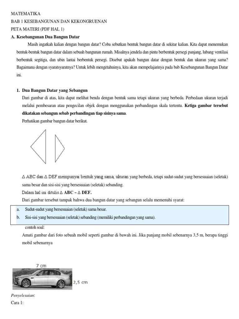 Modul Kesebangunan Dan Kekongruenan Matematika Kelas 9 Sem 1