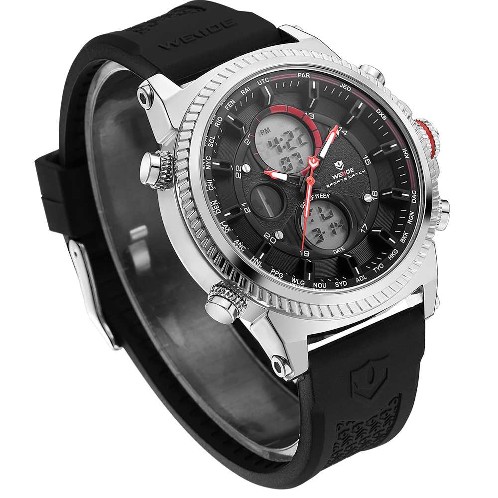 Weide Jam Tangan Analog Digital Pria Wh6403 Black Silver