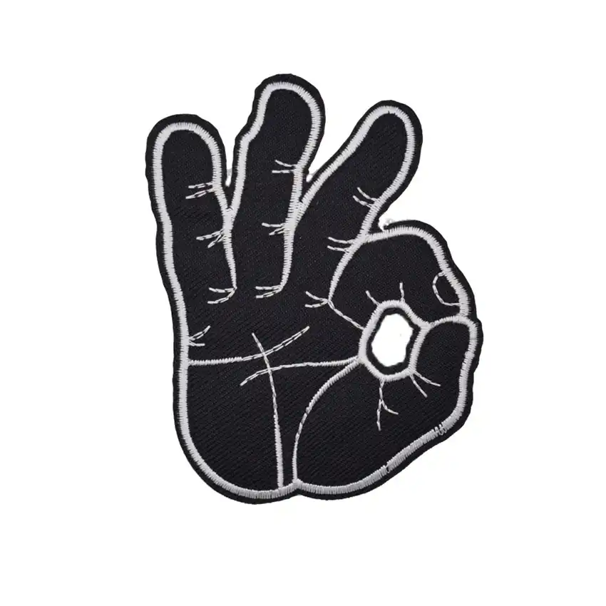 Aki Oke Ok Tangan Gesture Logo Figer Applique Bordir Patch