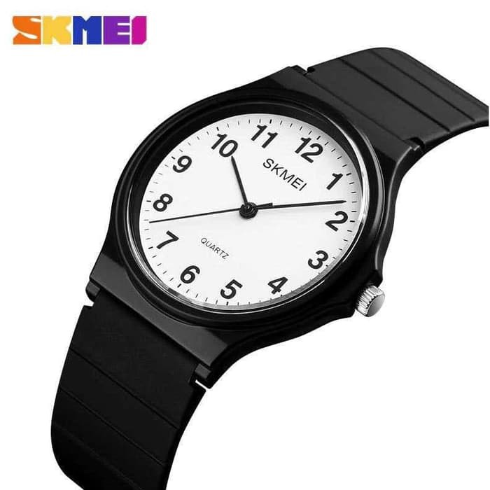 Q Q Vq66j001y Jam Tangan Casual Pria Hitam Putih Karet