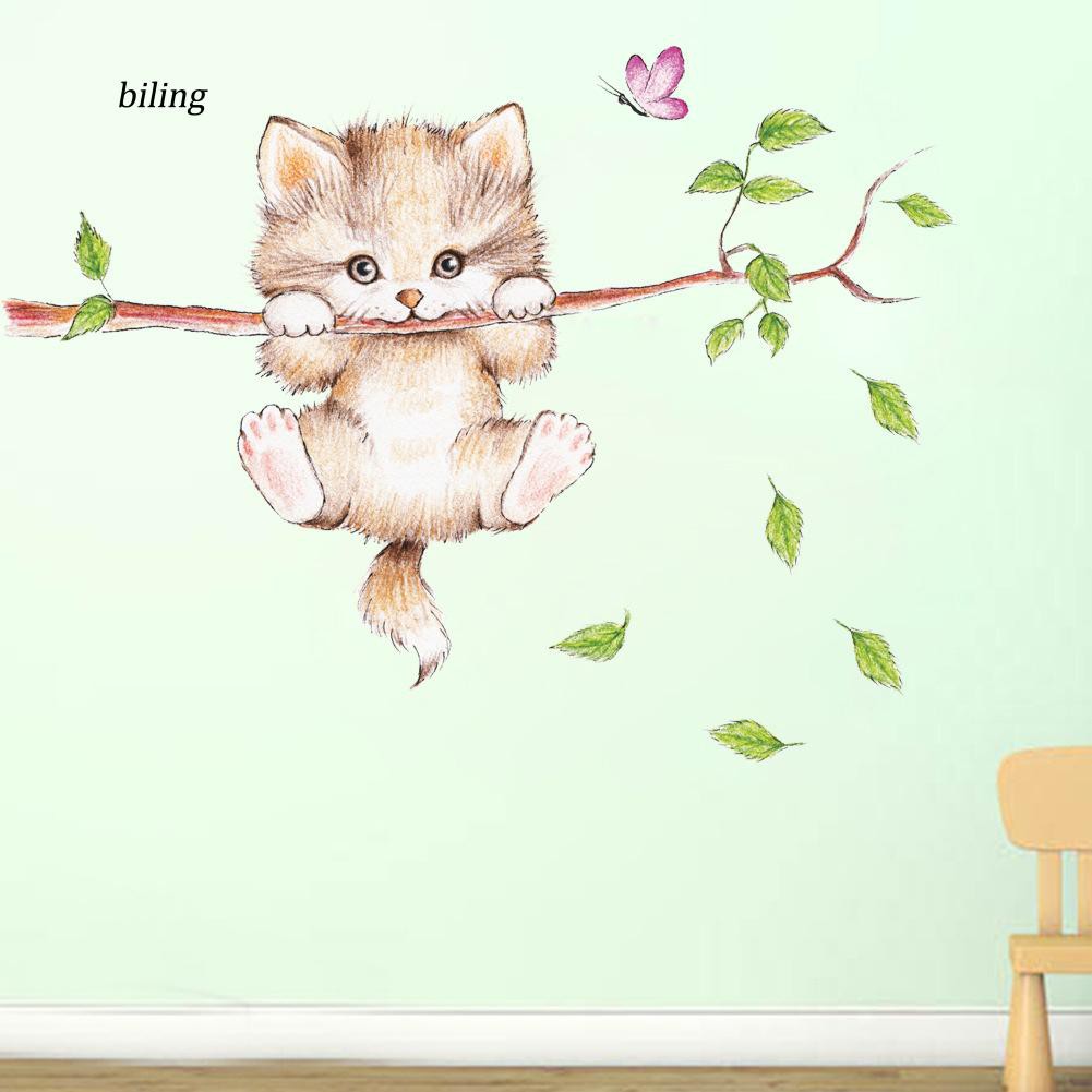 Stiker Dinding Decal Desain Kartun Kucing Lucu Bahan Pvc Untuk