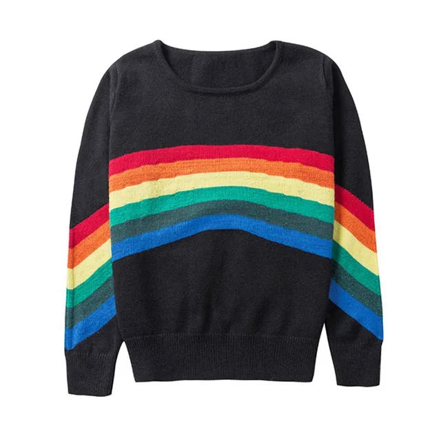 Baru Wanita Sweter Tanpa Kancing Pola Pelangi Sweater On Hitam