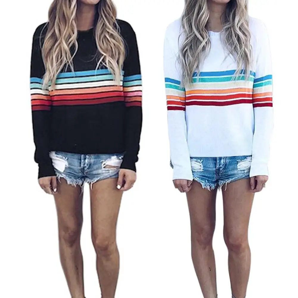 Beli Wanita Kaos Pelangi Pola Warna Nyentrik Lengan Panjang Atasan