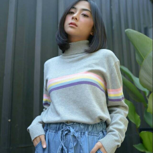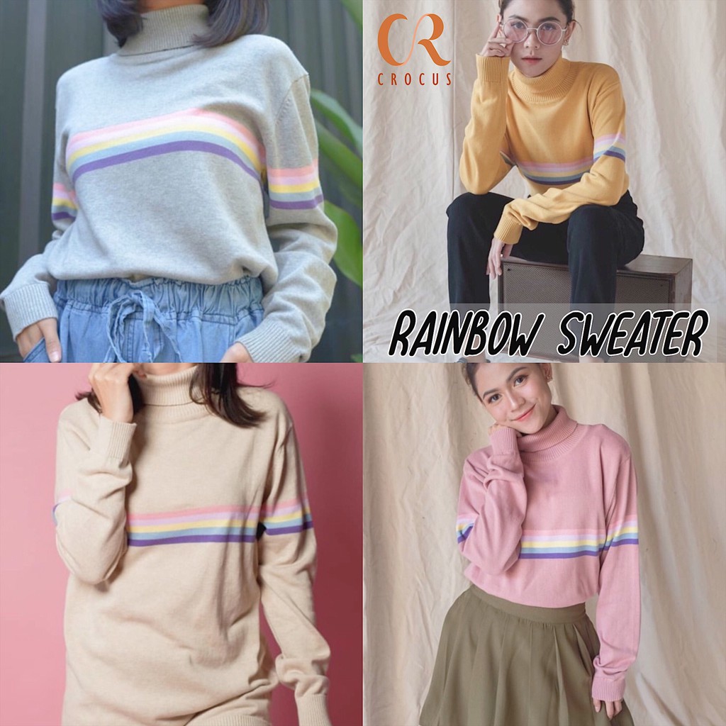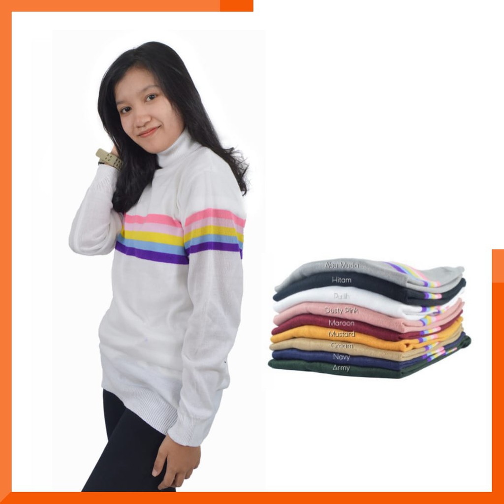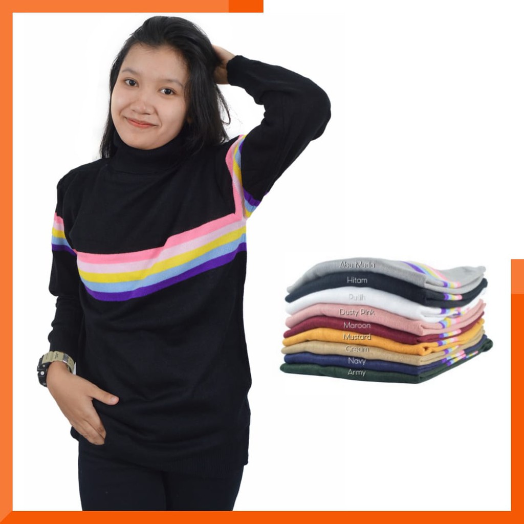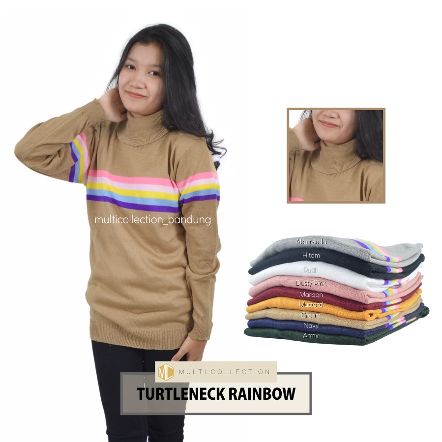 Sweater Rainbow Turtleneck Baju Rajut Wanita Shopee Indonesia