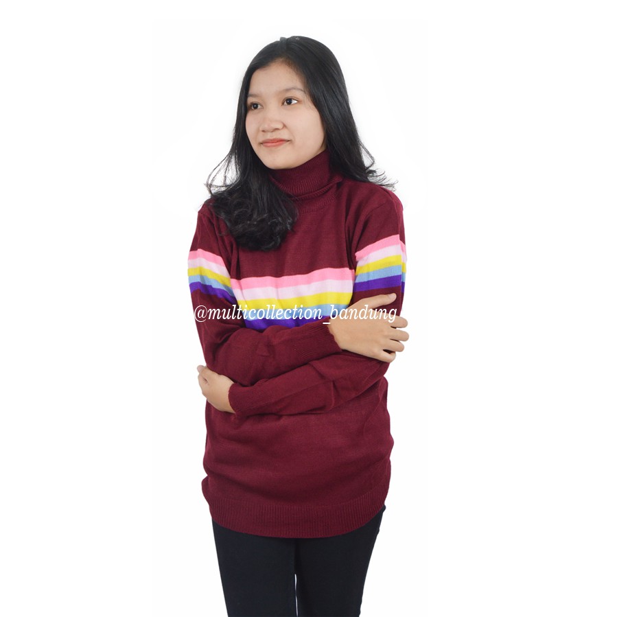Turtle Neck Rainbow Sweater Rajut Wanita Atasan Dan Tunic Wanita