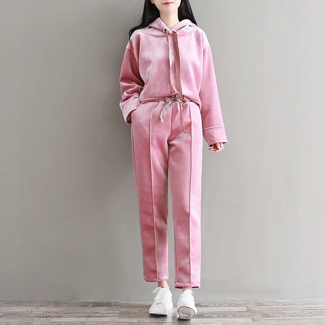 Berkerudung Bulu Baju Wanita Lengan Panjang Hoodies Celana Celana