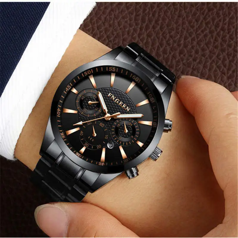 Fngeen Jam Tangan Pria Warna Hitam Fashion Quartz Arloji Fitur