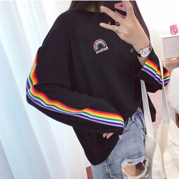 Tshirt Atasan Wanita Kaos Oblong Cewe Lengan Panjang Rainbow