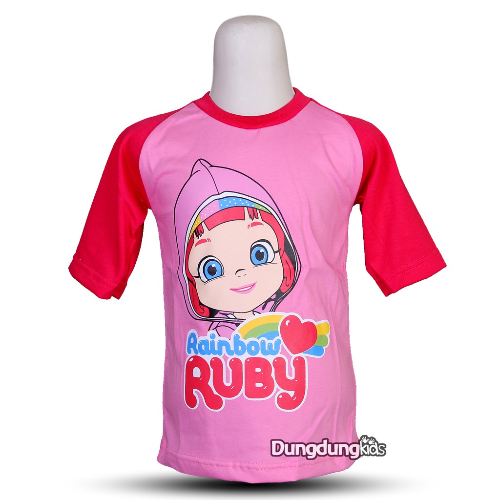 Baju Kaos Raglan Karakter Pakaian Anak Cewek Perempuan Rainbow
