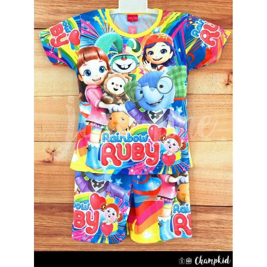 Setelan Anak Rainbow Ruby Baju Celana Anak Gambar Kartun Printing