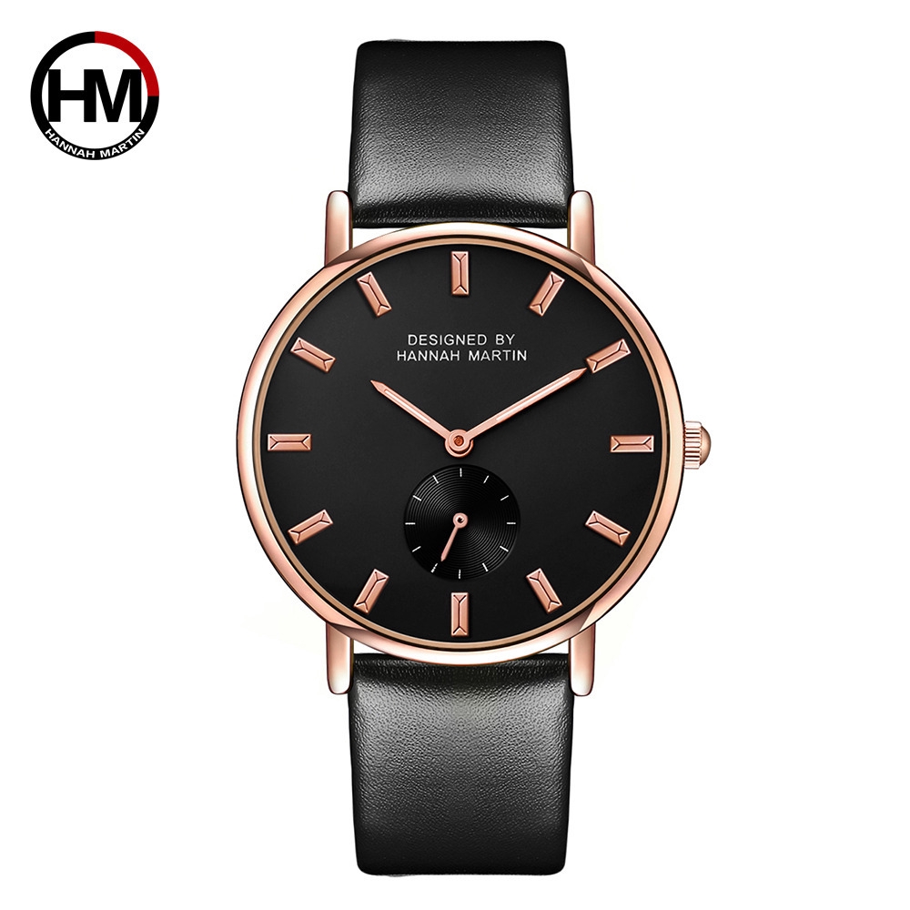Jam Tangan Quartz Analog Dial Bulat Strap Kulit Warna Hitam Putih