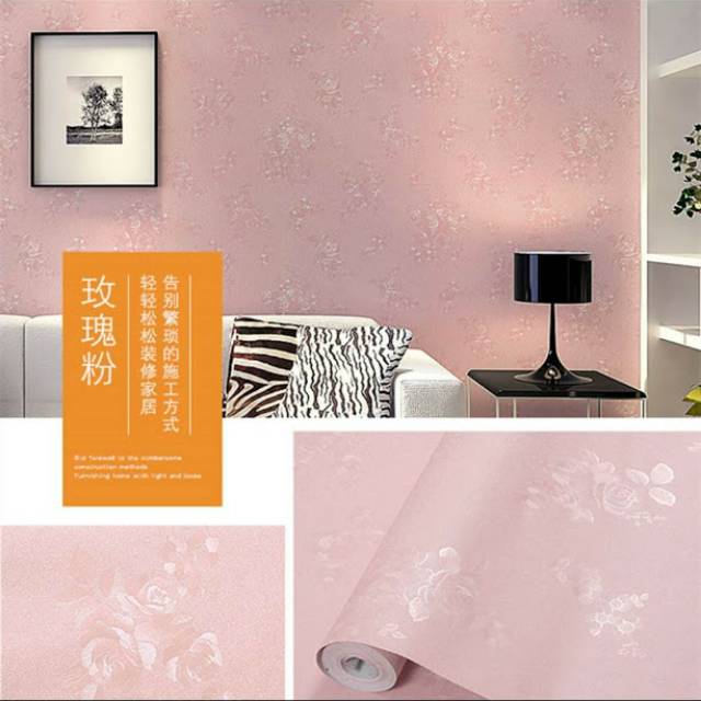 Promo Murah Wallpaper Dinding Kamar Ruang Tamu Polos Pink Peach