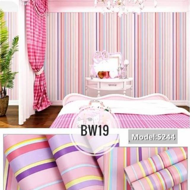 Jual Wallpaper Sticker Dinding Kamar 5 Meter Salur Garis Pelangi